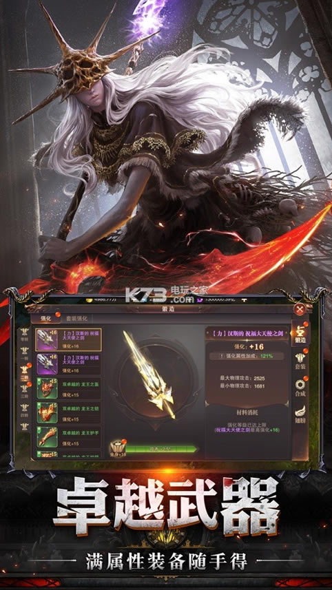 2、神级装备的加持,锻造强大的武器,御敌杀魔,将所有的敌人击败称霸一方;