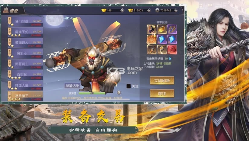 2、潇洒的行走九州,遇到各种奇遇机缘,随时跟你的对手进行挑战,互动玩法乐趣多;