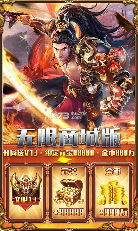 ★创角送:满级VIP13、绑定元宝*88888、金币*888万!