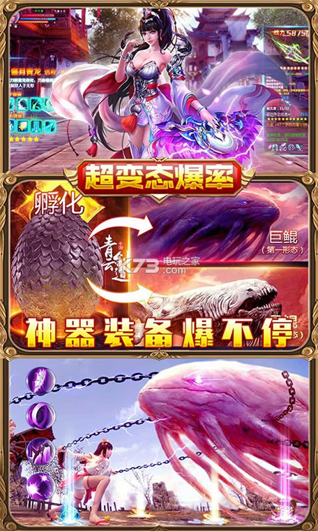 精致的美术画面通过炫酷3D效果,为玩家呈现了一个人魔大战的历史战场。配合精彩玩法供玩家探索,踏上君王之路。全自由化的PK对抗,极致激爽的战斗对决,将最大限度满足你对仙魔手游的所有幻想!