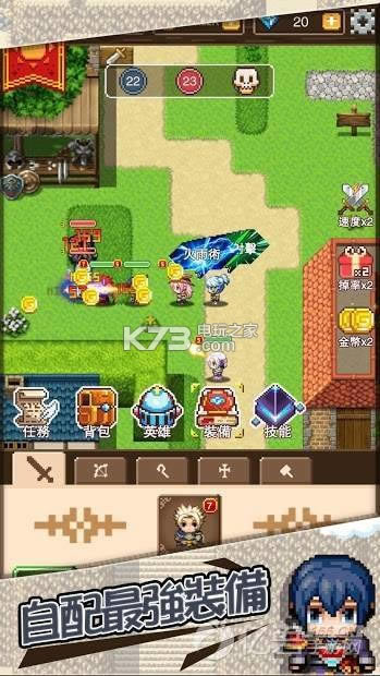 在本作中,玩家可以利用放置的方式带着勇士挑战魔王并提升装备。