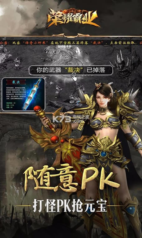 《荣耀霸业h5》沿袭传奇世界、热血传奇等经典大作的热血PK游戏体验,并以“实在”,“痛快”的研发理念,让动作更带感,技能更酷炫,装备获取更直接,画面更写实痛快。