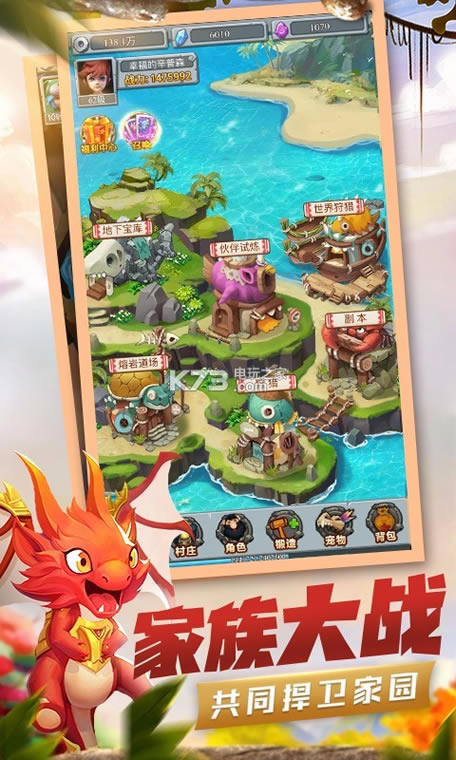 游戏拥有庞大而有趣的宠物系统,无论是河边可爱的野生小龟,还是雄霸大陆的远古恐龙,上百种各式各样的宠物都可以让玩家随意捕捉。部分宠物还可以乘骑,不管是骑着乖巧可爱的小龟小猪,还是骑着威武霸气的剑齿虎和霸王龙,相信都有无限的乐趣!