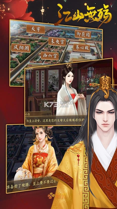 《山河且为聘》体验帝王生活的游戏,在这里精力谋杀,争权夺利,招募更多的朝中大臣们入麾下,控制最最强大的力量,争夺至尊之位,让你深入其境,争夺权力 。