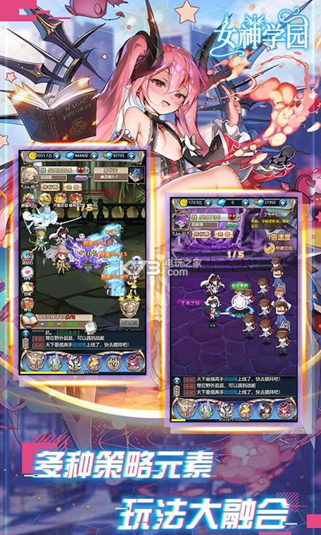 《女神学园》是一款以中国、罗马、北欧神话传说为背景的幻想国战手游,集合Q萌人设、恶搞剧情、策略战斗、丰富收集等众多玩点,所有人物均为萌妹、御姐、女王、萝莉等,在玩家的带领下推倒一个个美女boss,解救女神,组建后宫!