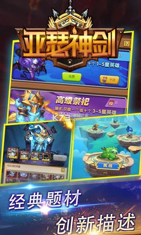 《亚瑟神剑》是一款拥有挂机玩法的高质量放置类的RPG手游,游戏采用了经典西方魔幻题材,重现经典,完美还原英雄们的成名技能!超酷的视觉冲击及打击感精致入微!那么你最想成为哪个英雄?这款游戏将实现你的梦想!现在选择你最喜欢的英雄,出来拯救世界吧!