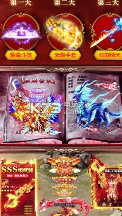 1.游戏上线就送vip12,还有38888元宝和1000w铜钱,每天签到还能送大家很多元宝,所有的装备都是靠打boss掉落的,不用的还能分解成为强化碎片,真正做到了好玩不累。