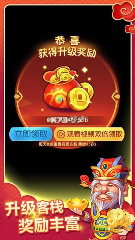 在财神客栈游戏中,玩家可以通过各种获得金币的途径赚取金币来提升客栈楼层,当客栈达到40层时会有意外惊喜哦!不断升级拥有更高级客栈开启巅峰人生吧!