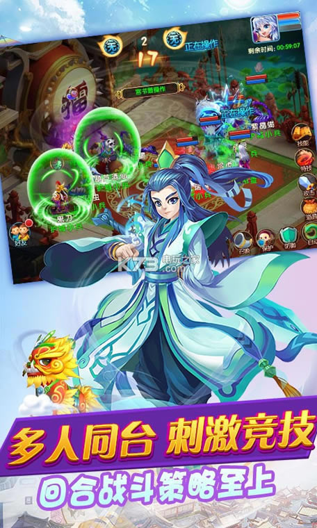《果果联萌》故事发生在仙魔大战之后,永世和平的愿景并未实现,天书失落,魔道再度崛起世界重陷混沌,你将被选为天命之子,寻找天书,除魔卫道重返荣耀!新版本游戏玩法更丰富更特色,特色回合制战斗系统,策略烧脑同时兼具酣畅淋漓的战斗对决,霸气十足的强力副本BOSS等你来战,更有新玩法押镖劫镖刺激你的每一个神经;游戏内含特色系统,三秒快速组队,轻松休闲无需爆肝,挂机就拿海量资源,福利多多金币水玉每天都送,轻松闯关升级无压力;时装定制,时尚造型DIY,翅膀坐骑华丽无限;帮盟对决跨服激战,与好友并肩激战三界,新版本新体验,邀你来战!