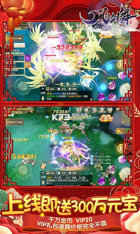 1、上线赠送VIP6、20000绑定元宝、199万金币(15级后开启福利,即可领取)