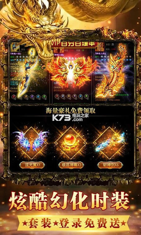 3.登录一键领取VIP礼包,大量材料、装备、宠物、转生丹、所有材料道具应有尽有
