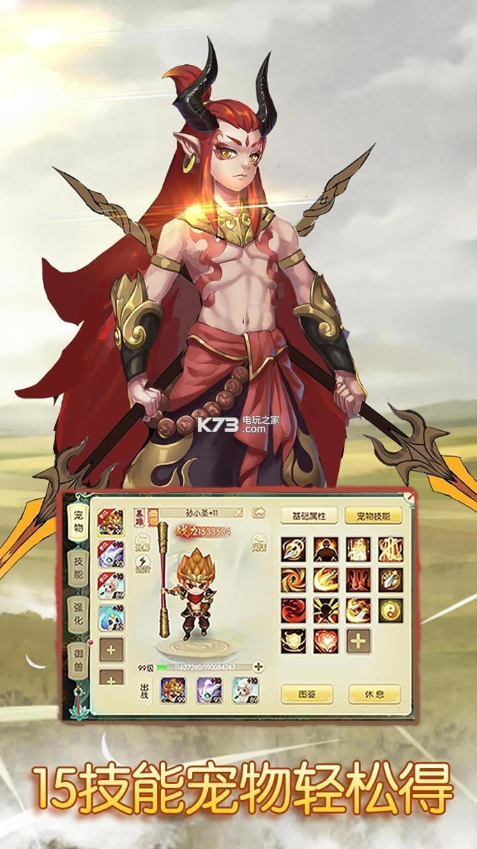 ★超强宠物,最高可学15技能 比传统回合制更加强大的宠物,摒弃复杂的宠物合成,普通宠物都可以拥有15技能,更有逆天宠物神技,带你体验不一样的宠物养成