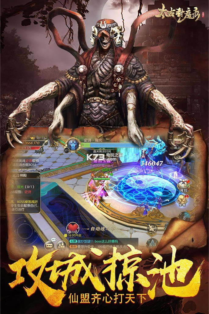 神话级梦幻妖魔MMO手游《太古封魔录》正式登陆,万妖集结,战斗不息!四大职业,相互抗衡,相互之约,多样跨服竞技,瑰丽3D视觉特效,段式轻功,360度浮空,让你真正地自由畅游六界;仙盟大战,给你震撼人心的团体PK体验;披风、背饰、灵宠等,花样外观给你足够的炫耀资本;开放世界boss,珍稀装备掉落,进入刺激的大逃杀之地........
