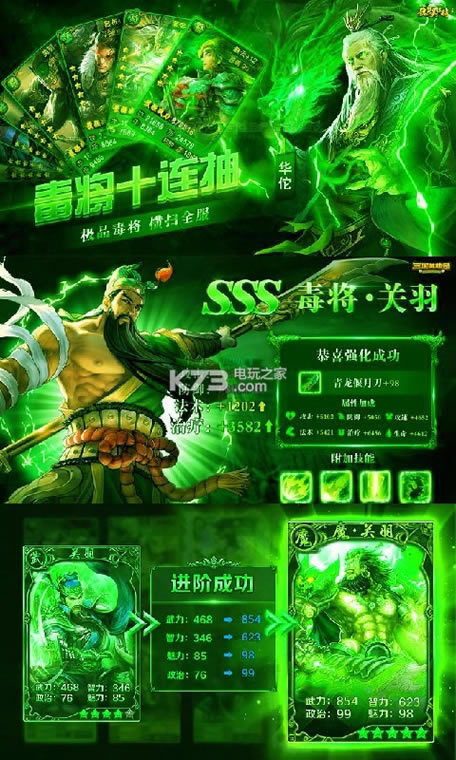 ★游戏能同时上阵21位神将,还有助阵羁绊功能,全新玩法,让你收集全部三国神将;