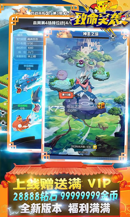超人气手游《致命突袭(无限)》火爆来袭!新增四大精灵阿尔宙斯、钢铁超梦、原始固拉多,原始盖欧卡,新增全新跨服竞技活动--名人战,新增继承功能,精灵可以共享等级资源,全方位培养阵容。热血对战,突破本体限制,MEGA超进化Go!馆长试炼,属性克制免疫,加入全新队形策略,全屏对决一触即发,目标宠物大师! 萌宠在线捕捉,收集属于你的图鉴,探险之路不再孤单! 7天送S宠物,一起踏上冠军之路吧!