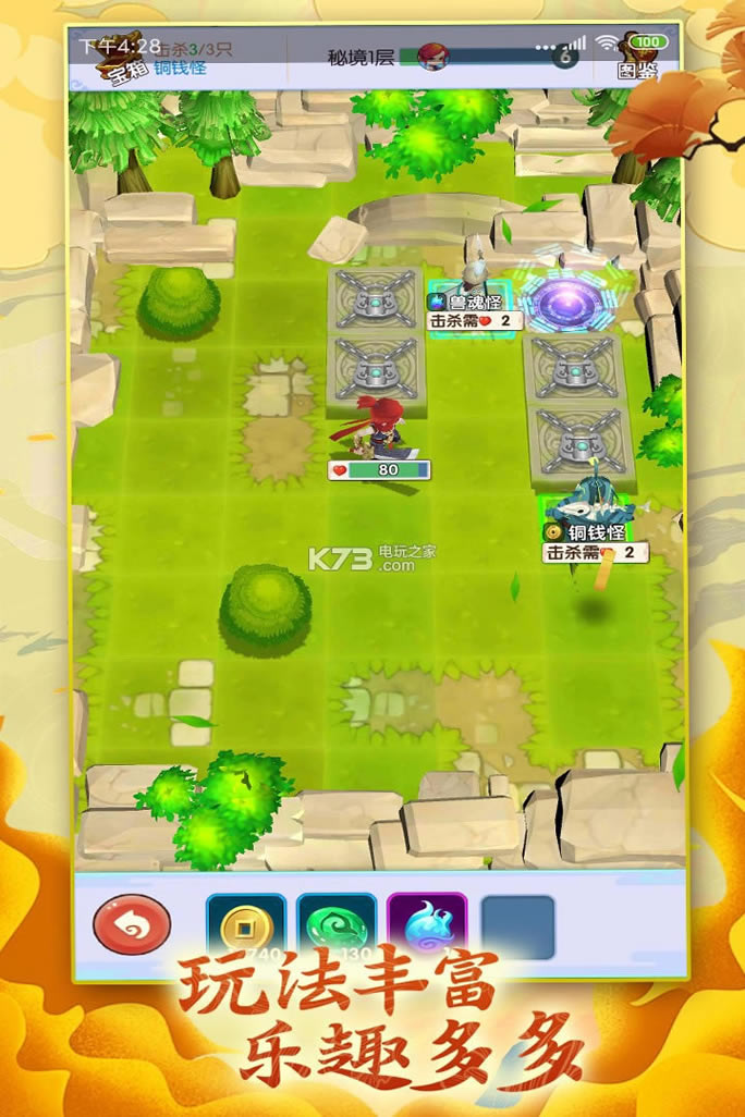2、在游戏中玩家需要寻找招募人、妖、仙三族中知名的伙伴,组建强大的阵容,并加以排兵布阵应对各种闯关挑战。