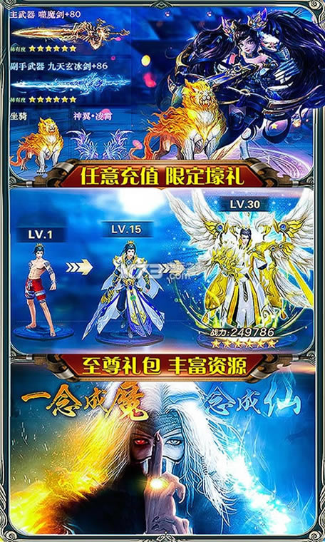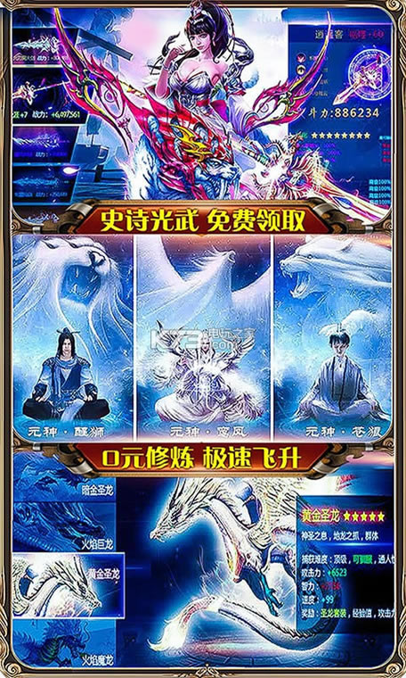 ★上线即送至尊满级V13,加强版VIP礼包免费送,还送88888绑元,888万金币。