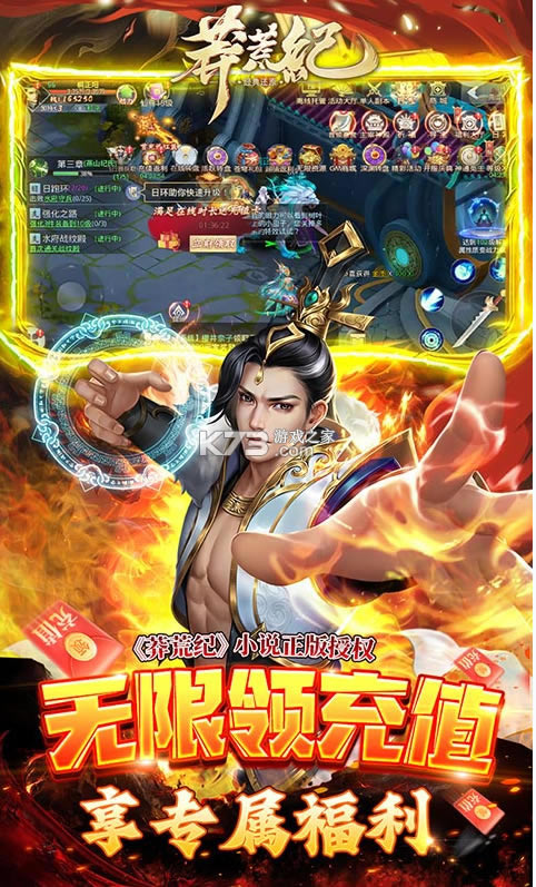 第一玄幻修仙手游《莽荒纪(GM无限刷充)》全面革新,全新GM模式,全新的交互体验,全新的PK玩法,带您进入崭新的莽荒纪时代。大气恢弘的玄幻世界,次世代声画体验,酣畅淋漓的打击感,让您体验一天200级的战力飙升;通过引人入胜的剧情动画、炫丽的技能特效、多变的任务系统、惊心动魄的背景音乐,以及灵兽系统、仙魔战场等丰富多彩的游戏玩法,与您携手畅游爱恨情仇交织、好玩刺激相伴的莽荒世界.以精品诠释经典,让小说立体可视化。尽在莽荒纪!