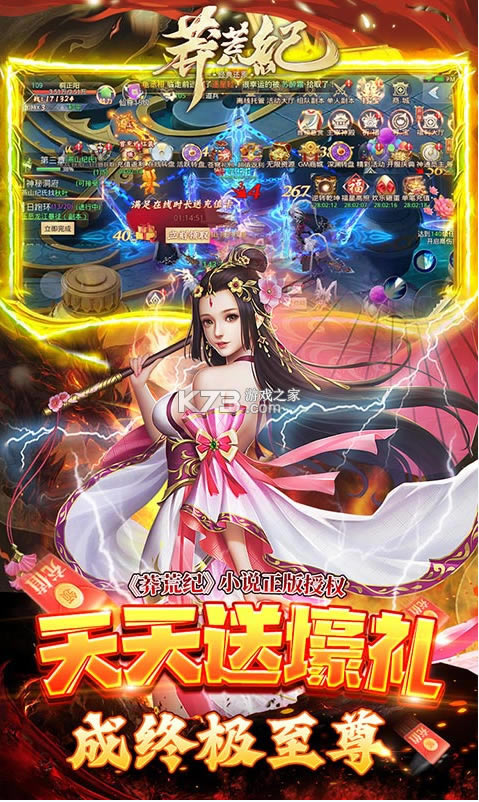 莽荒纪最新版下载是一款玄幻题材的ARPG手游。玩家登录就送超V、千万铜币、养成材料、炫酷称号;通过活跃送全超V权限、20000充值、品橙装、幻化、GM商城激活卡。莽荒纪最新版下载更有无限金币与经验BUFF可以每天领。无限的资源和材料,让你战力飙升,等级快速提升。莽荒纪最新版下载感兴趣的快来下载挑战吧!