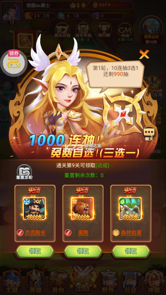 ★闯关累计送1000连抽,传说、神话英雄免费自选!