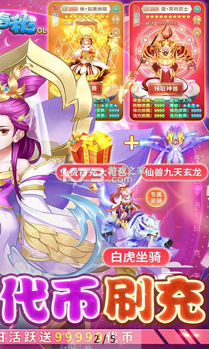 ★完成任务领取所有神兽,还送酷炫白虎坐骑,七天登录再送Q萌坐骑