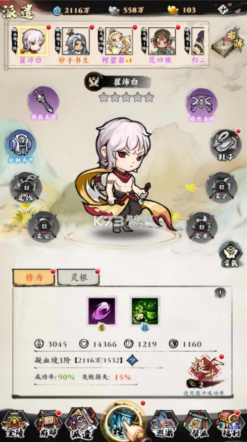4、在乱世纷争的江湖上作战,寻找不同的对手来对决,轻松击败boss