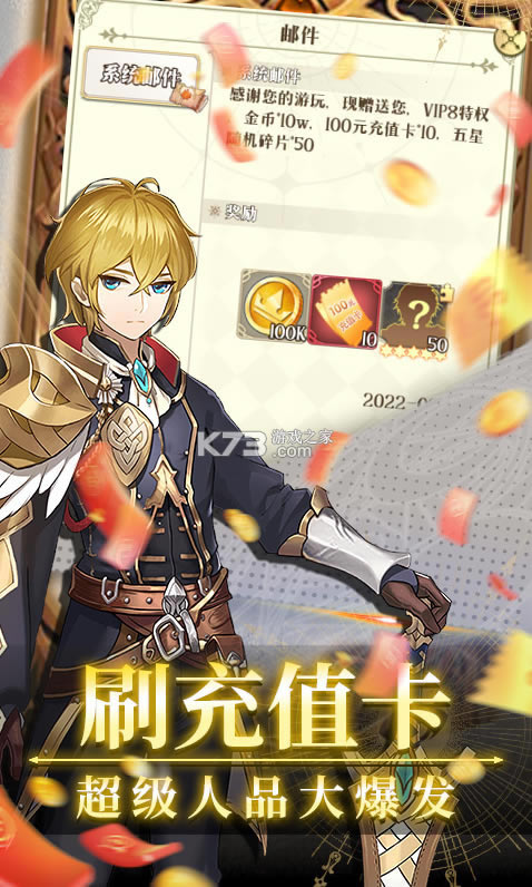 挑战竞技场,与其他玩家一较高下,简单休闲的放置类游戏,减轻玩家的操作负担,让玩家能够轻松愉快的进行游戏,想收角色养成和阵容搭配带来的乐趣。更有超多上线福利,创角即送五星英雄及V8特权,每日挂机还有几率掉落充值卡道具!