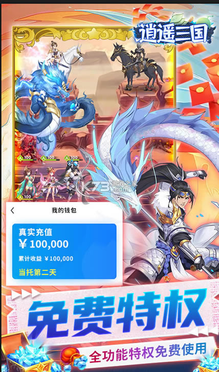 《逍遥三国》打造全新的科技修改的玩法,获得免单券和直充卡,超多福利眼花缭乱,在这里各种福利天天都白送,打造全新的卡牌游戏,超多奖励领不完,与玩家们同台竞技排兵布阵,群雄混战多样活动开启全新的烧脑,万人团战拥有超强的策略。