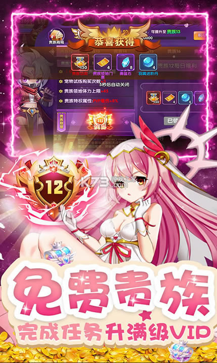 《彩虹物语》经典的美术风格,数千种时尚搭配免费体验,探索未知大陆,贵族全免光速升级,享受多样的便捷服务,十倍爆率装备全靠打,免费贵族乐趣无限,冒险经典享受多重的福利,获得额外的buff,福利超级多,送彩贝,福利超级多。