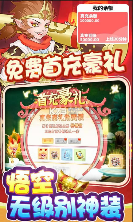 ★后缀说明:开局送免费直充刷元宝,可激活首充拿超强圣兽孙悟空和无级别神装