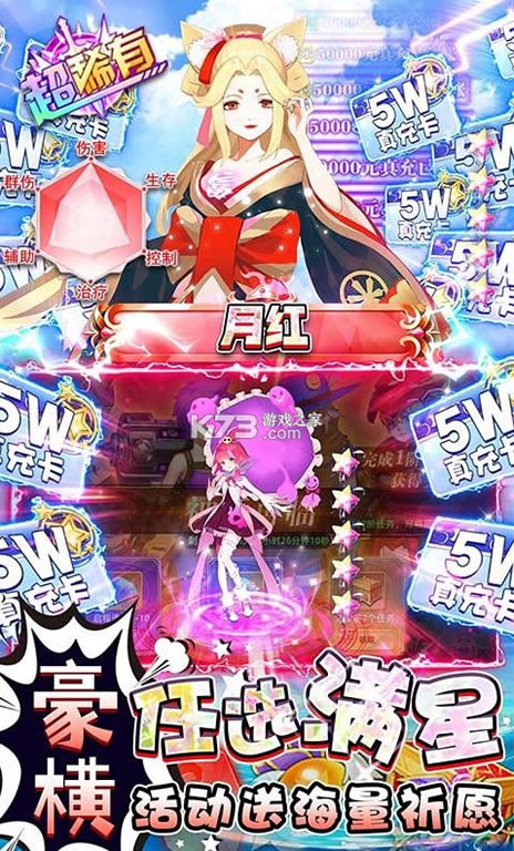 全新魔幻RPG卡牌手游,上线就送满级VIP、10w钻石、无门槛千元充值卡(200w钻石)及2880w金币,上线立即任选UR神灵,0氪也能轻松搭配合击阵容,任选满星活动让你轻松获得满星神灵,通关送万元真充,升级免费送4w真充,霸服计划最高可得9w真充,轻松领取海量充值奖励,每日活跃还送330元充值!