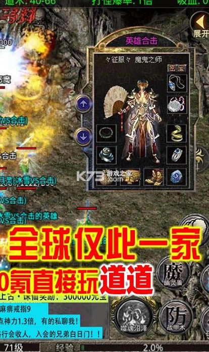 超高爆率,一刀秒杀所有,全屏炫彩光柱,满地装备,只需一秒,回收背包,超多华丽酷炫的技能招式,让玩家可以体验激烈震撼的打斗场面。