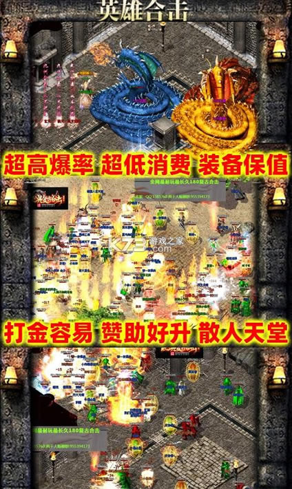 元宝金币滚滚来,超级的BOSS还有百人团战等你加入挑战。