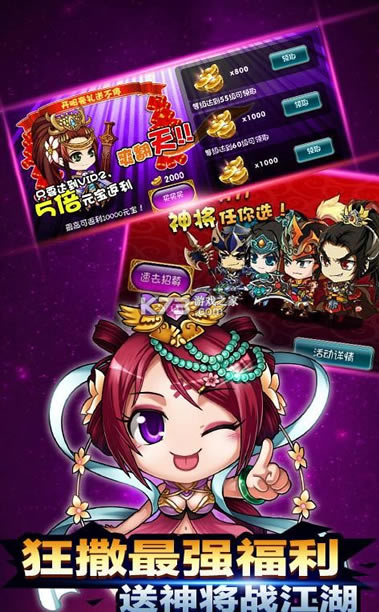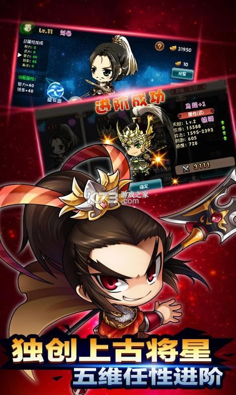 你需要收集各类Q版武将卡牌作为手牌战力!游戏中海量三国武将人物任你挑选,给力羁绊缘分buff,经典的回合制战斗模式,让你体验最为休闲的卡牌战斗!
