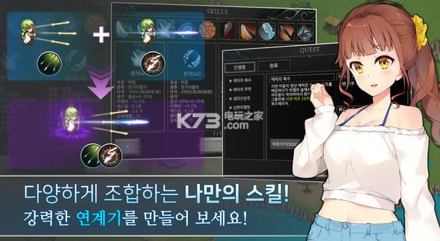 《indiside》是个韩风二次元rpg游戏,来到幻想森林中使用武器和技能来消灭一片又一片的敌人,indiside最新版推出新角色和武器,二次元结合像素Q版画面,一起进行无双体验吧。