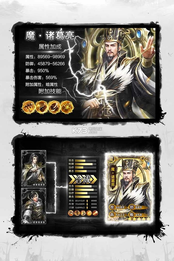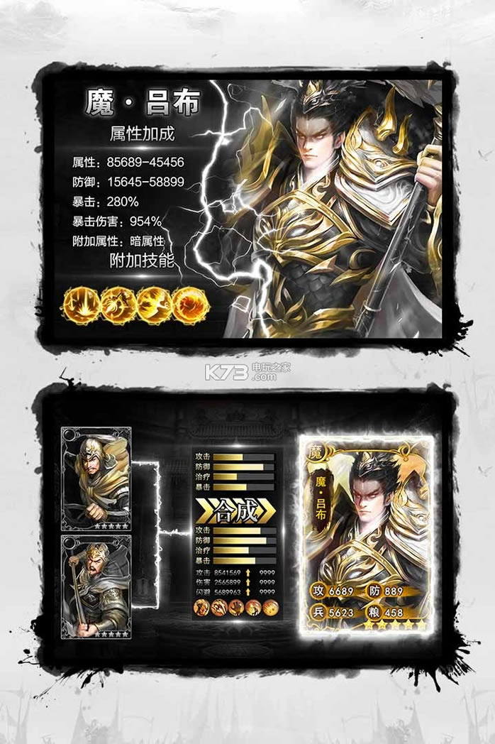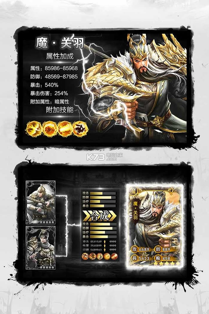 游戏中划分魏、蜀、吴、神、魔五大阵容相互克制,不同的搭配碰撞出不一样的火花。