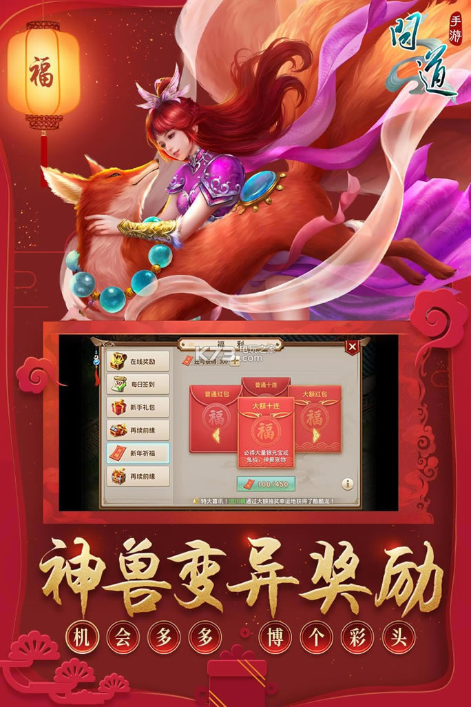 2020年1月3日隆重开启新年服!预约新服人人有元宝红包,组建固定队预约新服可额外获得一份守约奖励,冲刺新服预约还可触发“新服盛典礼包抽变异神兽“惊喜,此外,新服还独享新年特权之“新年祈福”活动,活动期间道友充值即可免费获得一张祈福券,祈福可随机获得银元宝、坐骑、变异或神兽,机会多多,鸿运当头,快来博个彩头过新年吧!