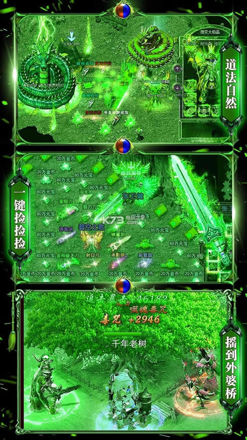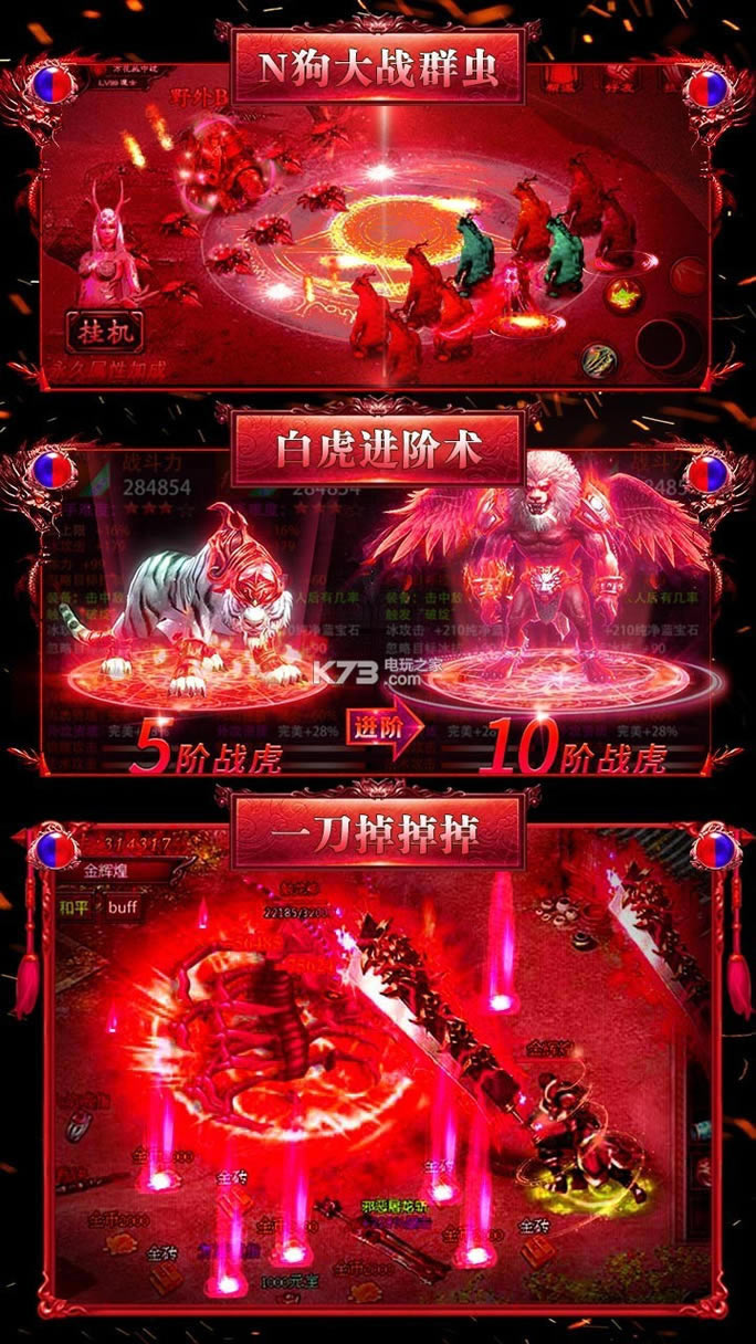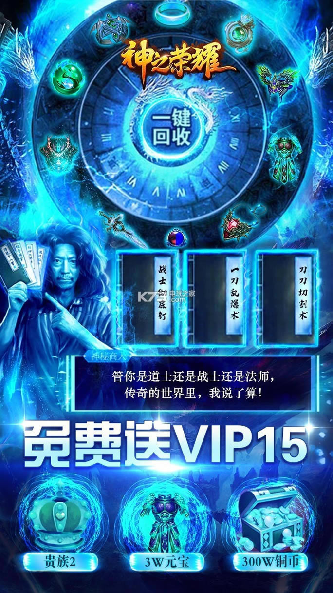 《神之荣耀》是一款主打挂机类的传奇游戏,上线即送vip15,让你体验土豪的快感。在游戏中你可以分别扮演战法道三种不同的角色进行战斗,炫酷的装备和炫丽的翅膀特效会让你身临其境,同时游戏采用放置类的玩法让你在百忙之后也可以尝试pk的快感,同时细腻的游戏画面也给你带来真实的游戏体验。更有超强合击秒人秒BOSS,给你不一样的传奇!