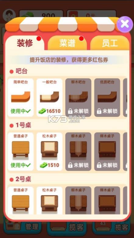 8.经营餐厅,你可以研发更多的菜品哦,感兴趣的小伙伴们快来试试吧!