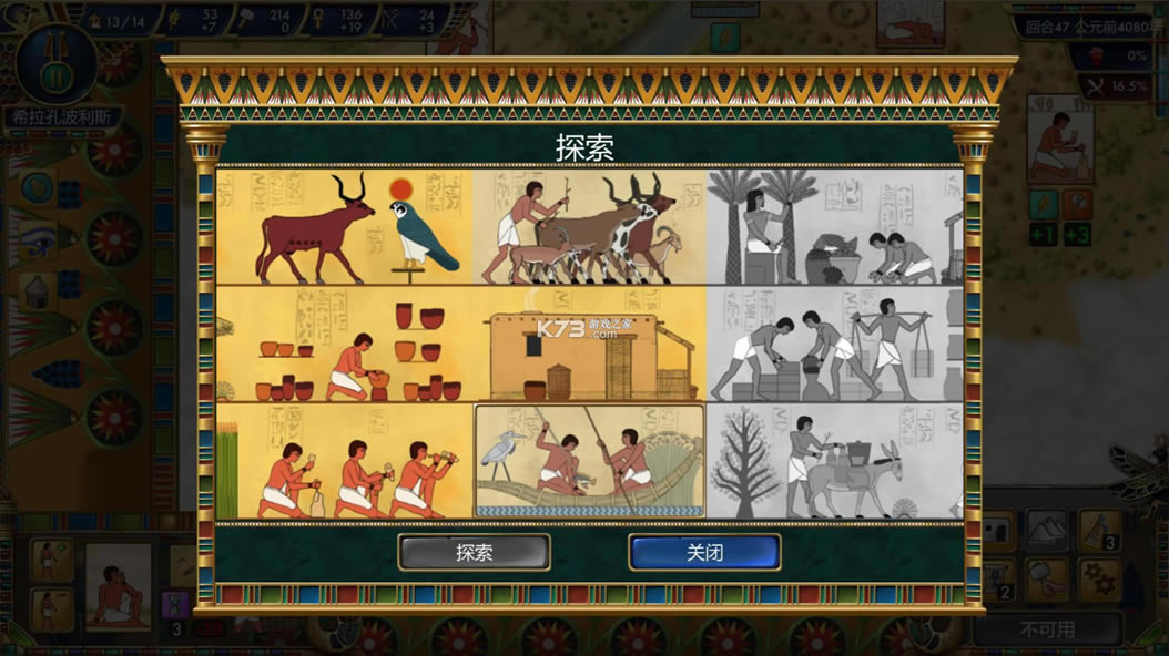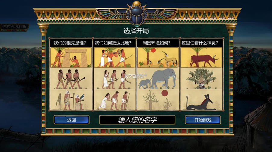 史前埃及是一款回合制游戏游戏经营游戏玩法手游游戏,游戏中玩家必须带领大伙儿一步步发展趋势文明行为,为了更好地让游戏尽可能的贴近真正,房地产商还依据相关资料再次创建了公元5000到公元3000年的古代埃及地理图,并将气候问题也一并考虑到以内。