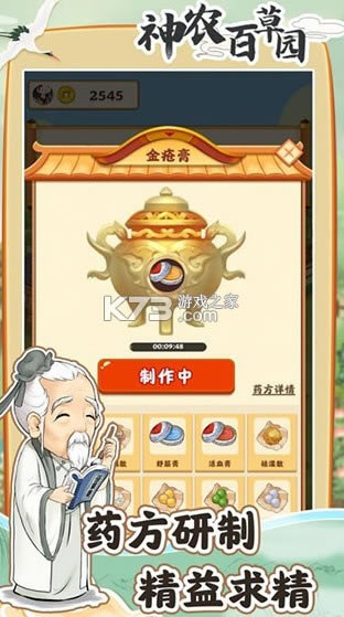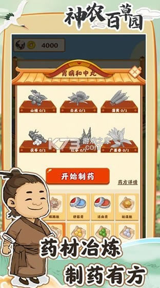 各种制药配方,抓取合适的药材依法炮制,不断丰富自己的中药库存吧。