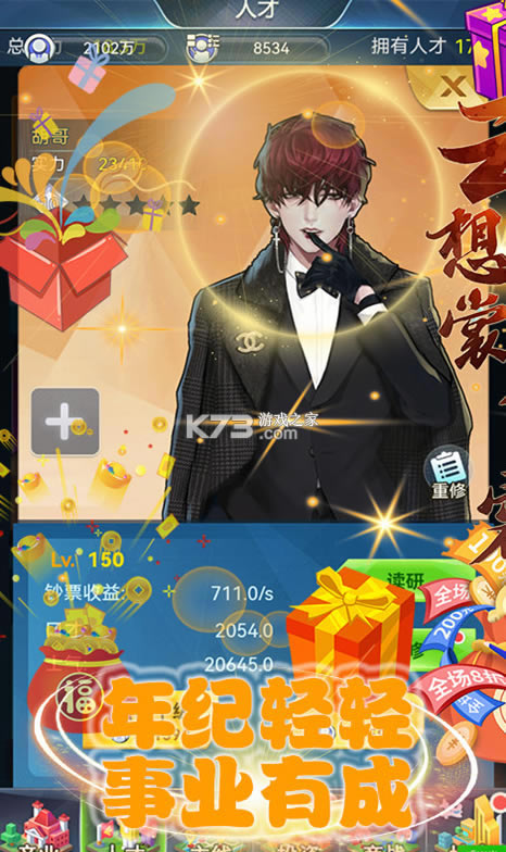 精致细腻的游戏画面,轻松有趣的玩法,招揽众多行业精英,为公司培养人才,通过各种商业手段,不断扩大公司规模,各种各样的美女任你选择,享受奢华人生。