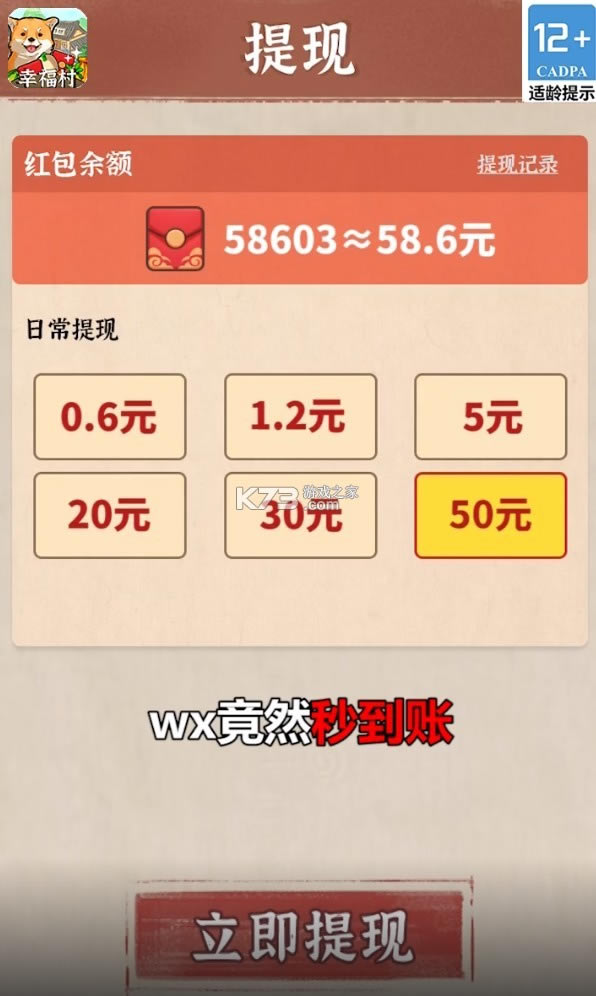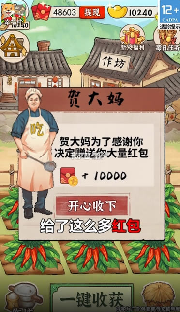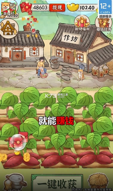 幸福村的故事红包版,一款田园风格的经营种地游戏,建设自己的幸福村庄,在这里种田养动物,每一次升级解锁都可以获得幸福的红包哦,每天只用几分钟的时间,一键收获,你的红包就能发送到微信了。