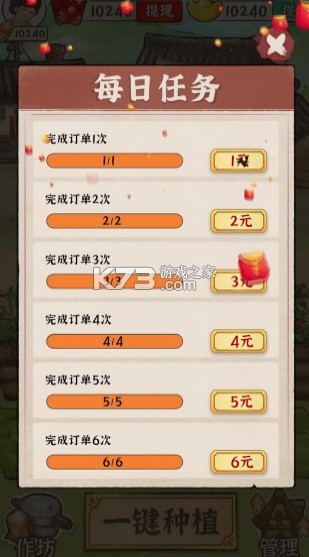 等级越高,种植订单越多,奖励越多。同时,玩家们可以满怀信心地迎接挑战,所有红包都是真实有效的。