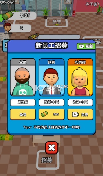 2、竖版的界面和清新的画面风格,流畅运行,一点点打造出你理想的公司环境吧。