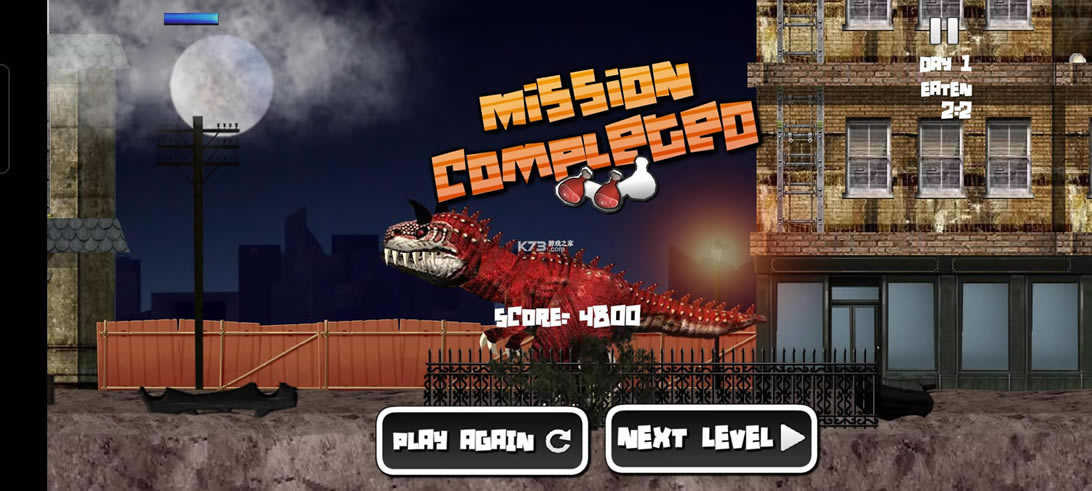 摧毁车辆,咬死或是射击那些攻击你的人类,直到到达终点,进入下一关开始新的挑战