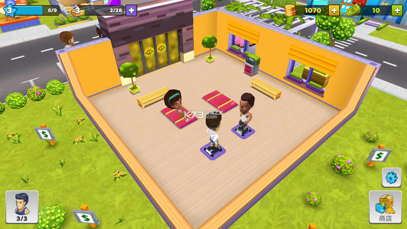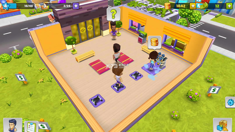 这一次你将经营你自己的健身店,了解健身的知识,从顾客哪得到满意,还需购买运动器材,身为老板的你要为客户提供周到的训练服务。该游戏玩法也比较简单,你需要做的也就是在这里创造属于你自己的健身帝国。你可以从一个健身俱乐部开始发展,通过时间管理让每个来到俱乐部的顾客满意。在此过程中,注意要及时按照顾客的不同需求给予对应的场地和器具。就比如说帮助客人锻炼身体,首先点击客人,然后点击他们需要使用的运动器材,然后根据他们的需要来选择不同程度的锻炼方式,并且获得锻炼进度和金币。然后你就能够通过赚取的金币来扩大场地,购买更多的新器具。另外,在梦幻健身房手游中,你还可以去完成一些不同类型的任务,这样你就可以获得更多的金币奖励来购买更多的健身器材,并且在完成那些任务的时候更加熟悉游戏的一些玩法技巧。不仅如此,你还可以去商店里面购买一些装饰物,将其放在健身房中不仅可以增加人气,并且还能吸引来更多的顾客,这样我们就可以获得更多的经验和金币了