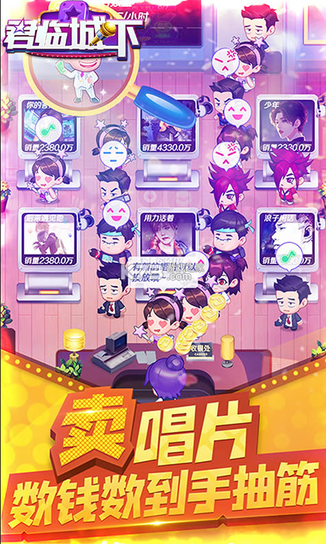 以录制唱片为核心玩法的音乐模拟经营游戏,玩家在游戏中可收集上百位人气歌星,录制上千首热门歌曲,还可以选择心仪导师亲临指导和聘请全球各行业大佬来当员工,通过门店经营把唱片销售出去赚钱来扩大自己的公司。同时,为了提升公司名气,还能让公司旗下明星到世界各地巡演、宣传,以及去参加各种音乐节和歌王争霸比赛。
