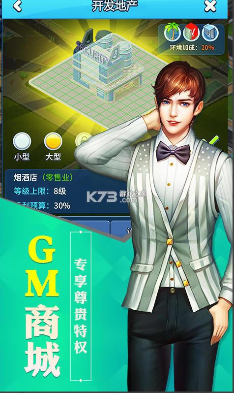 主打「商战题材」的现代玩法,真实感受富豪买地起楼、商业谈判、调教员工、豪车养小蜜的生活写照,玩家可相互投资,年度最佳手游”《大富豪》系列终极版,集合模拟城市、农场经营乐趣于一身的富豪模拟游戏,游戏里你就是上帝,一会造9个巴黎铁塔摆成心形,一会造10个自由女神像摆沙滩上...