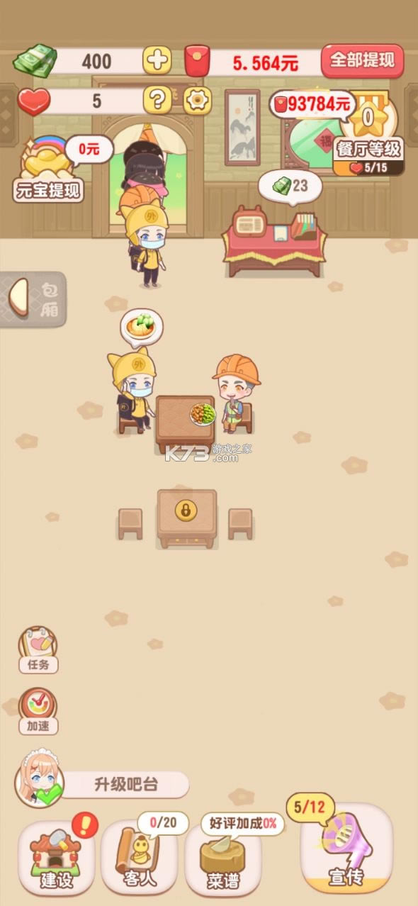 用最合适的经营策略经营一家神奇的餐厅,推广创意店面,吸引顾客赚钱。
